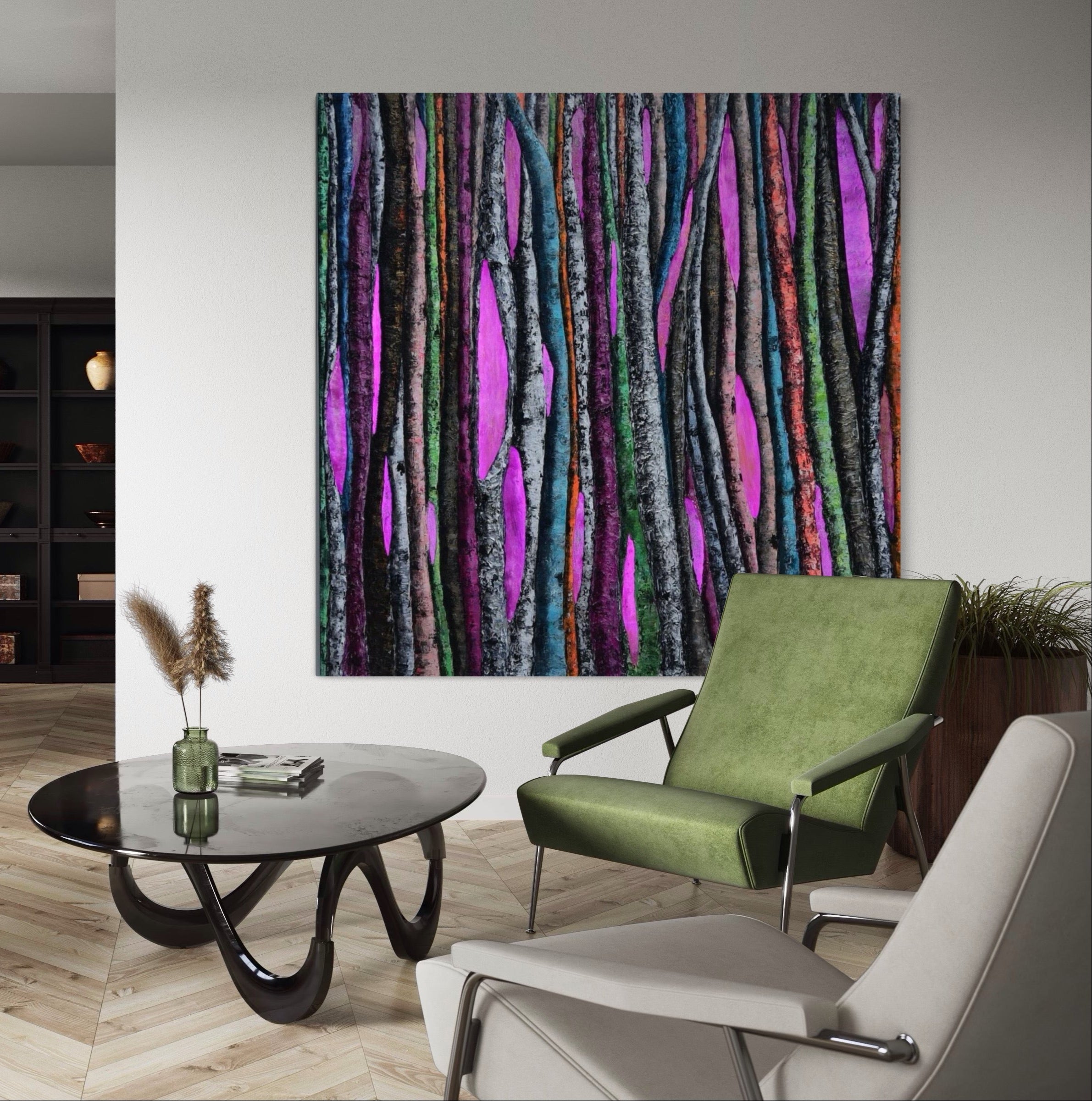 If you’d like to commission a custom artwork, Haleh is ready to bring your ideas to life, ensuring a perfect match for your space.