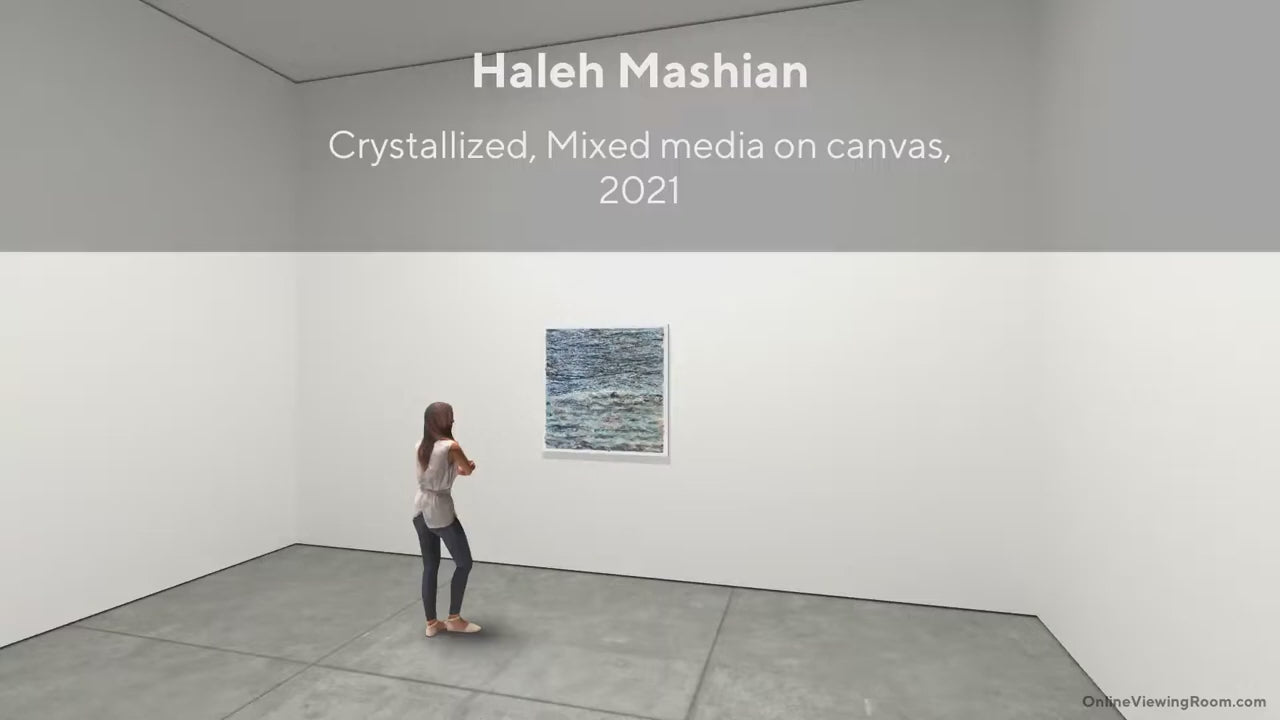 Haleh Mashian’s “Crystallized” has a multi-layered sculptural quality that captures the rhythmic movement of the ocean with a fusion of texture, depth, and light. Blurring the line between painting and sculpture, this mixed-media work transforms the canvas into an immersive seascape, where waves seem to extend beyond their boundaries. Using plaster, paint, glitter, and reflective materials, Mashian creates a surface that mimics the constant undulation of water, making the piece feel dynamic and alive.