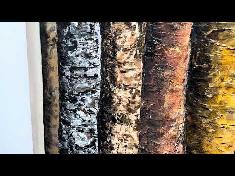 Haleh Mashian’s Veils of Nature distills the forest to its fundamental elements—texture, depth, and quiet resilience. Earthy charcoals, bronzes, and ochres form a restrained palette, lending the piece a sense of timelessness. Vertical forms dominate the composition, with towering tree trunks rising like sentinels. Each surface tells a different story—some rough and scarred, others smooth and polished—creating a striking contrast that feels both organic and sculptural.